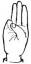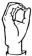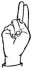 На ћирилици написано ИРИНА КОШУТАРАЦ састоји се из 14 слова [?]. Исписано ћириличном једноручном азбуком за глувонеме: